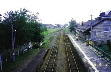 都市近郊の駅から、アングルはそのままにこの美瑛駅の映像に切り替わる。