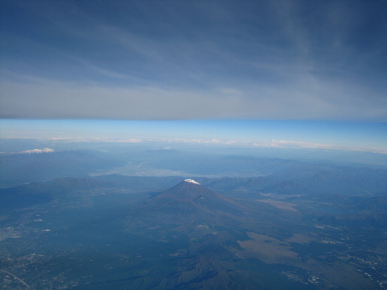 富士山の上には灰色の雲が横一直線に浮かんでいる。